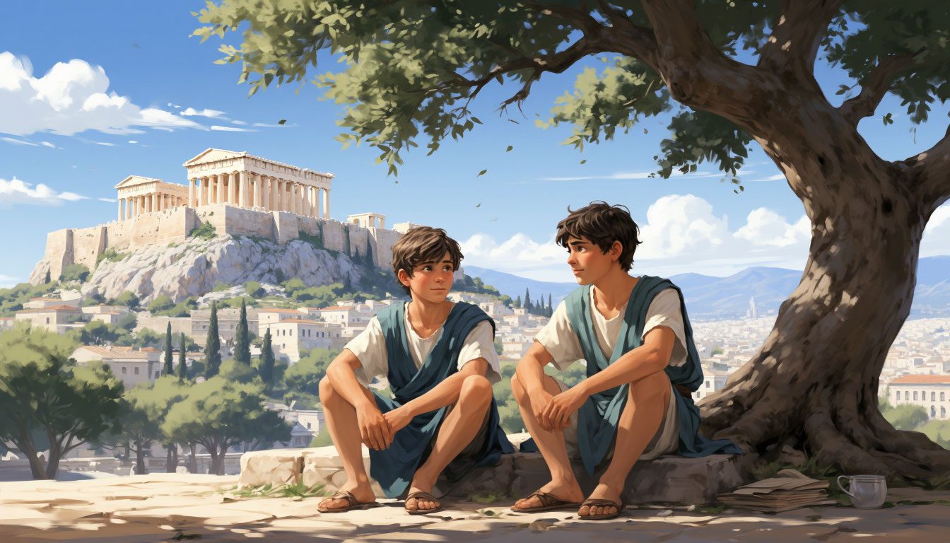 Эта миниатюра — о том, как важно размышлять о справедливости, даже если окружающий мир кажется хаотичным и жестоким. Я хотел показать не только древние Афины и их величие, но и живую философскую дискуссию, которая могла бы происходить между подростками того времени. Через диалог Артемиса и Алкея читатель видит, что справедливость не всегда совпадает с законом и что попытка понять мотивы людей и обстоятельства — уже шаг к мудрости.