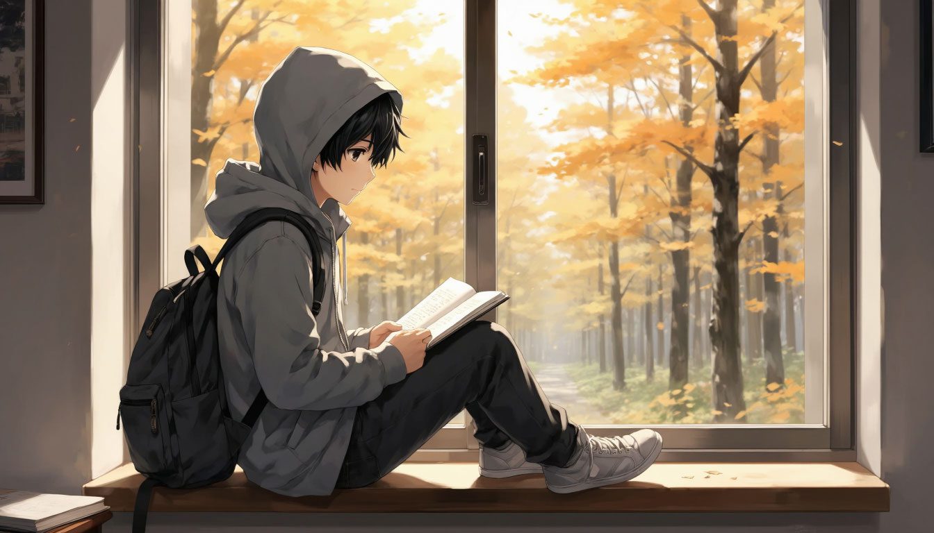 Я сидел в капюшоне у окна, слушал музыку в наушниках и смотрел на лес. Там — моя фантазия: сова, белка, пушистые ёлочки и сосны, треск веток, звон перемены, который резал пространство между фантазией и реальностью.
