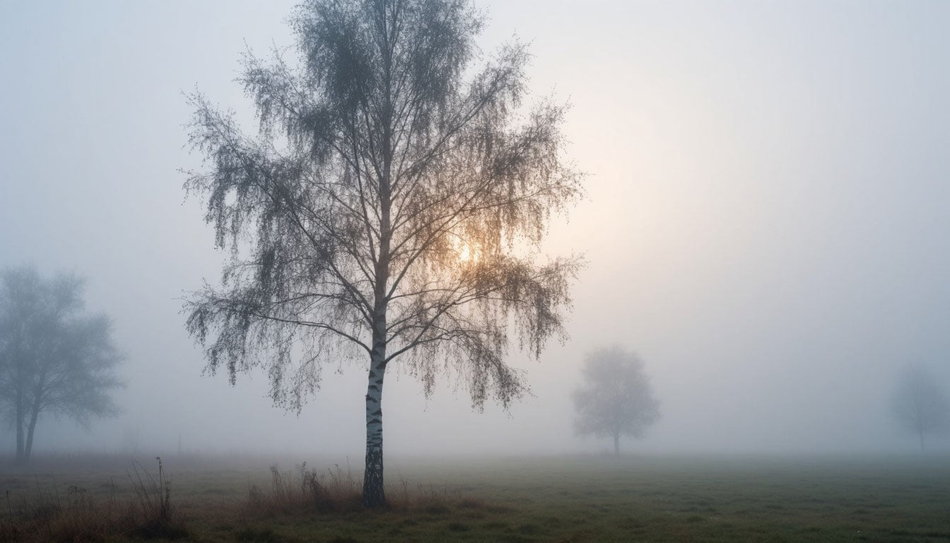 Этот стих родился рано утром, когда весь мир скрывался в густом серебристом тумане. Берёза стояла перед окном словно на пороге исчезновения — и мне захотелось поймать этот момент.