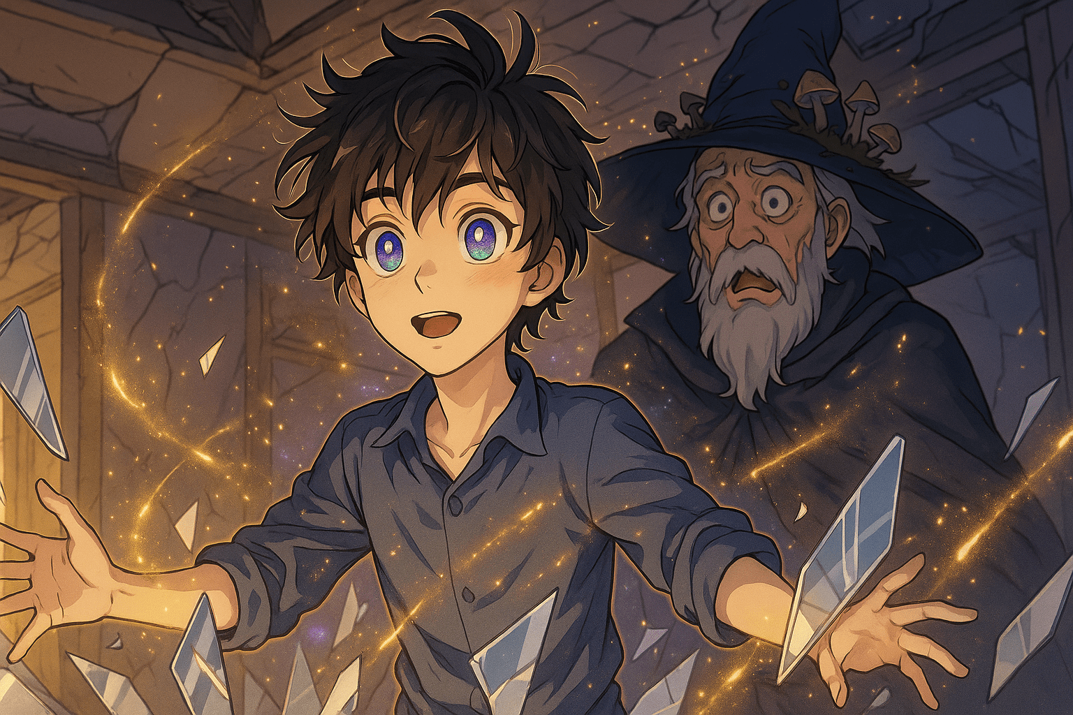 Где мальчик случайно превышает безопасный уровень магии, а старый маг-учитель в ужасе смотрит на грибы, выросшие у него на шляпе.