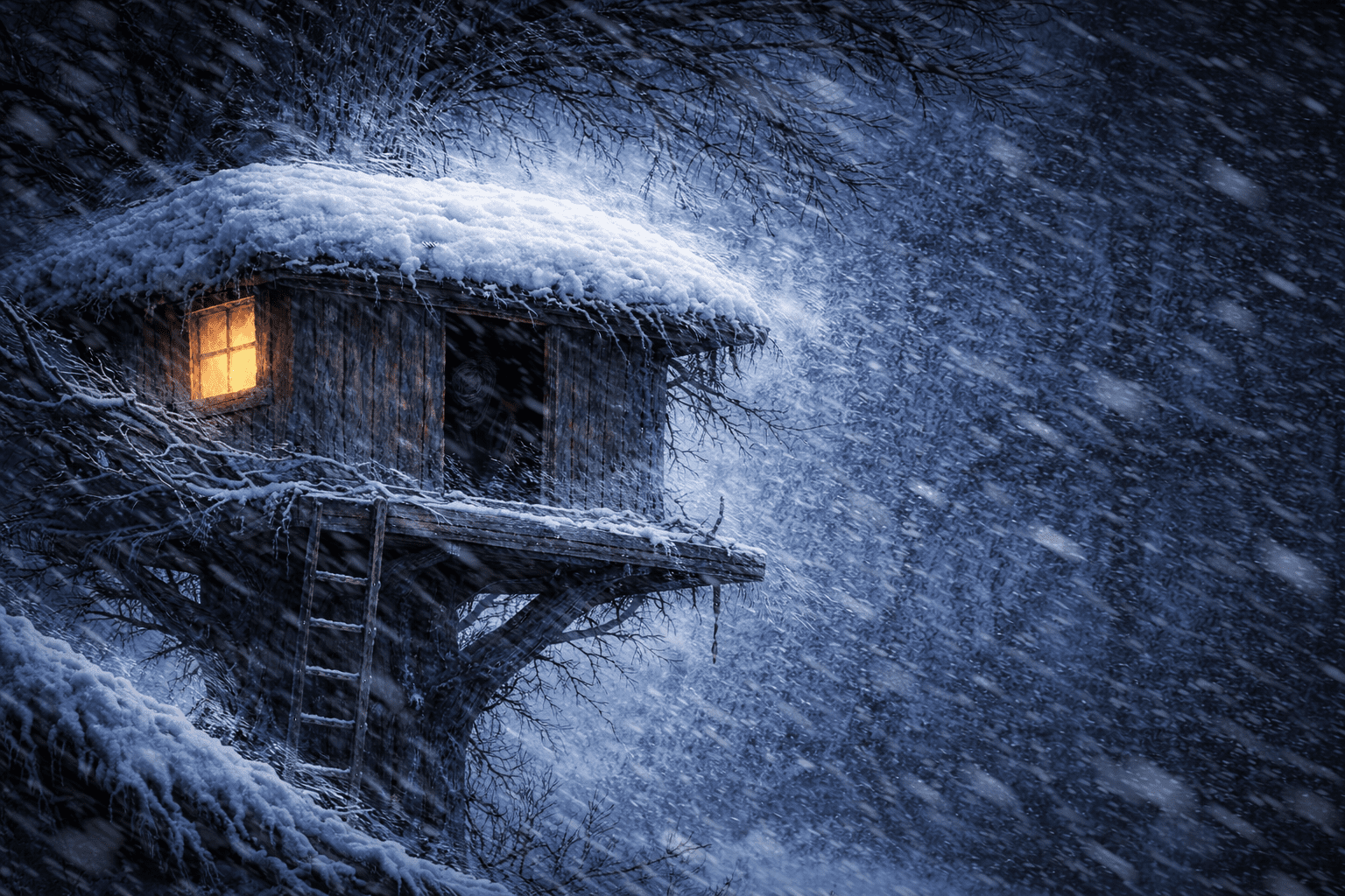 В домике стоял тонкий, неприятный звук. Артём встал у окошка, пытаясь вглядеться, но снег летел плотным белым пледом, не оставляя возможности что-либо разглядеть. Он выдохнул и медленно подошёл к стволу дерева.